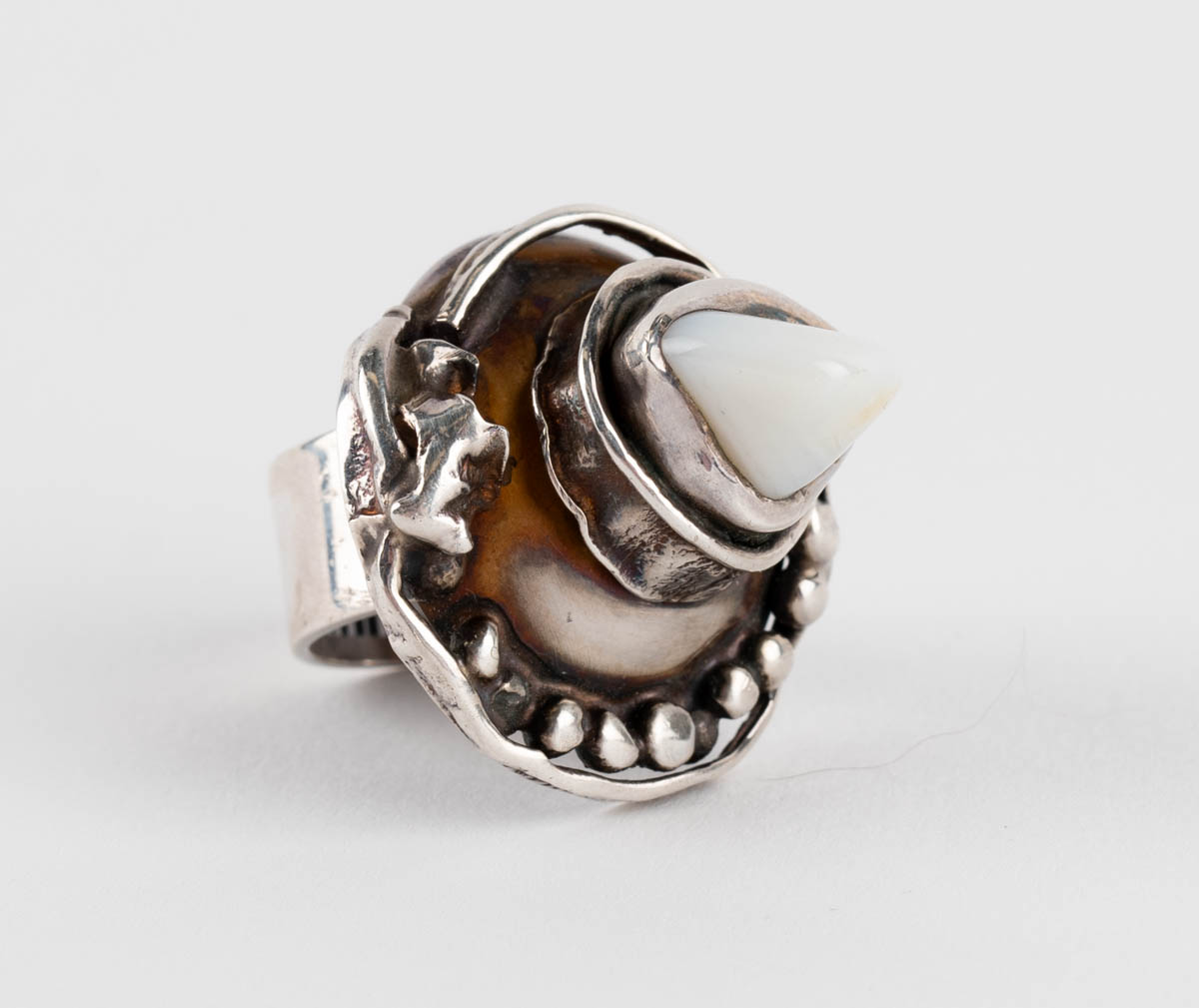 Hringur með íslenskum steini - Silfur - 828. Merkt. EU 52 cm