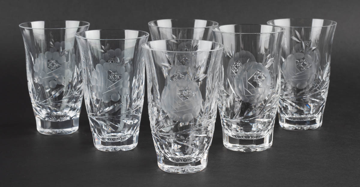 Matta rósin - Sex vatnsglös - Kristall - 12 x 8 cm