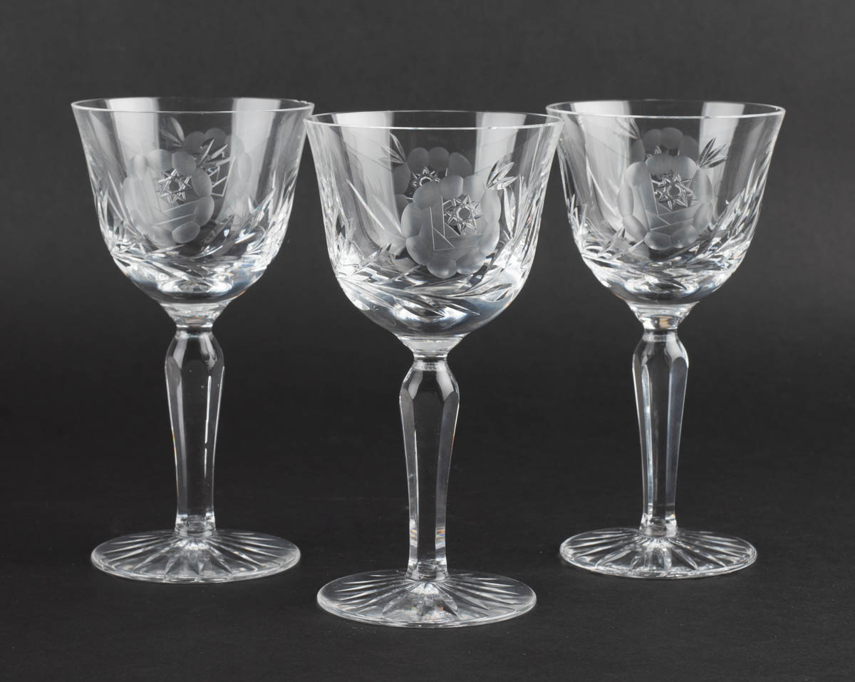 Matta rósin - Þrjú hvítvínsglös - Kristall - 16 x 8 cm
