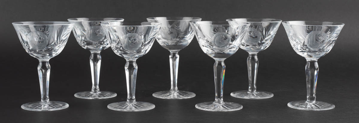 Matta rósin - sjö líkjörsglös - Kristall - 12 x 9 cm