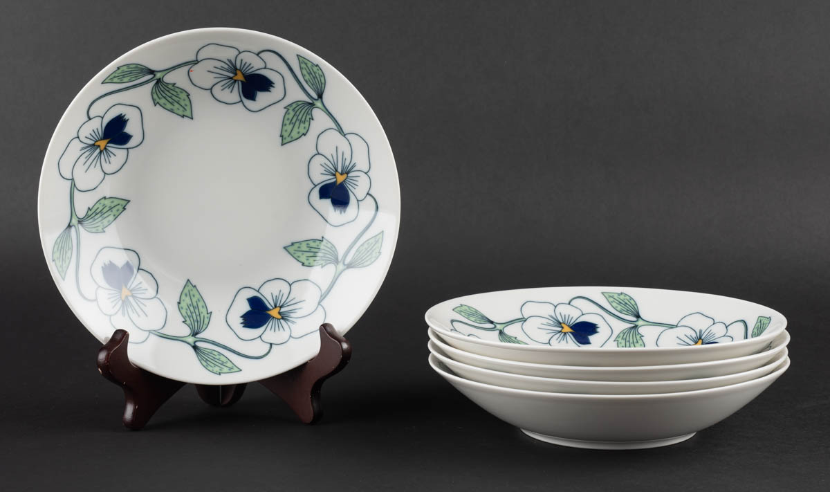 Fimm súpudiskar - Sylvia 250 ára Jubileumsservis - Postulín - Merkt. 20 x 20 cm