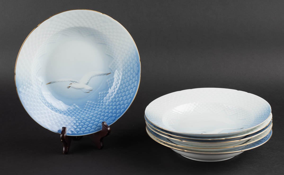 Mávastell - Sex djúpir diskar - Postulín - #22. Merkt. 4 x 25 cm