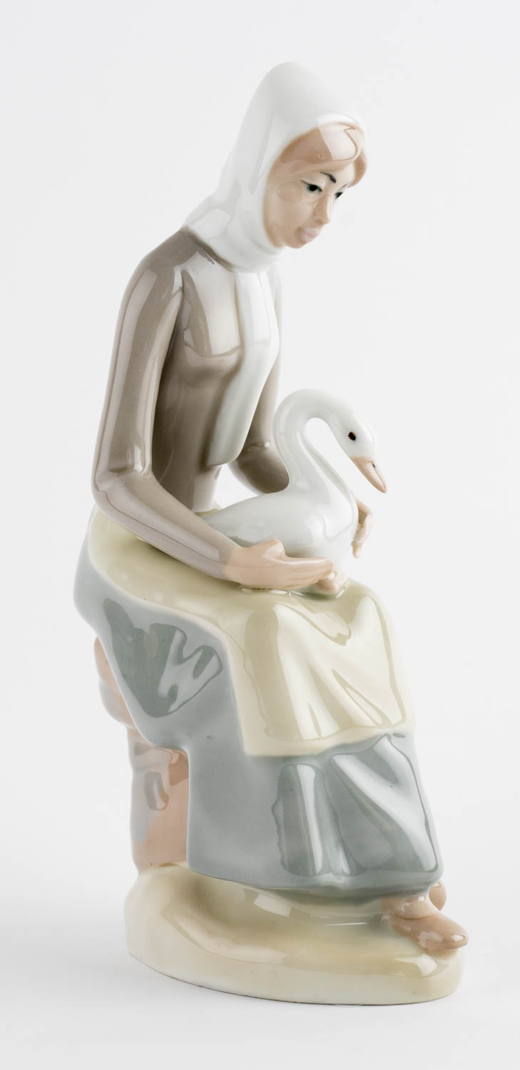 Stúlka með gæs - Postulín - Merkt. 23 x 6 cm