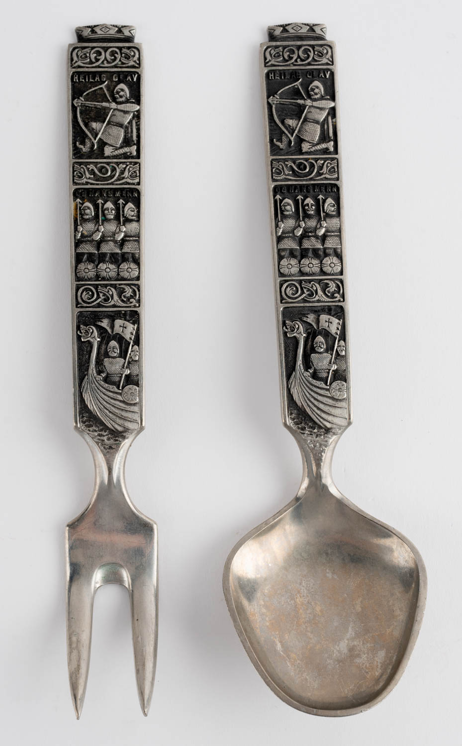 Meðlætisáhöld - Ólafur dýrlingur og menn hans - Málmur - Tin. #351.. Ómerkt. 21 x 10 cm
