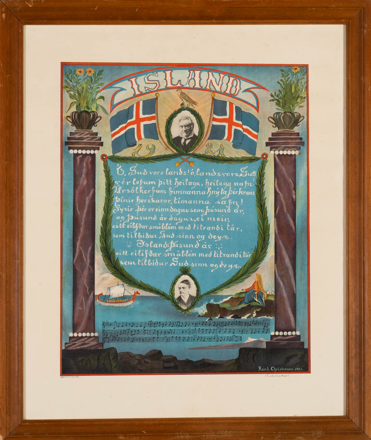 Þjóðsöngurinn - Þrykk - 1921. Merkt. 42 x 33 cm