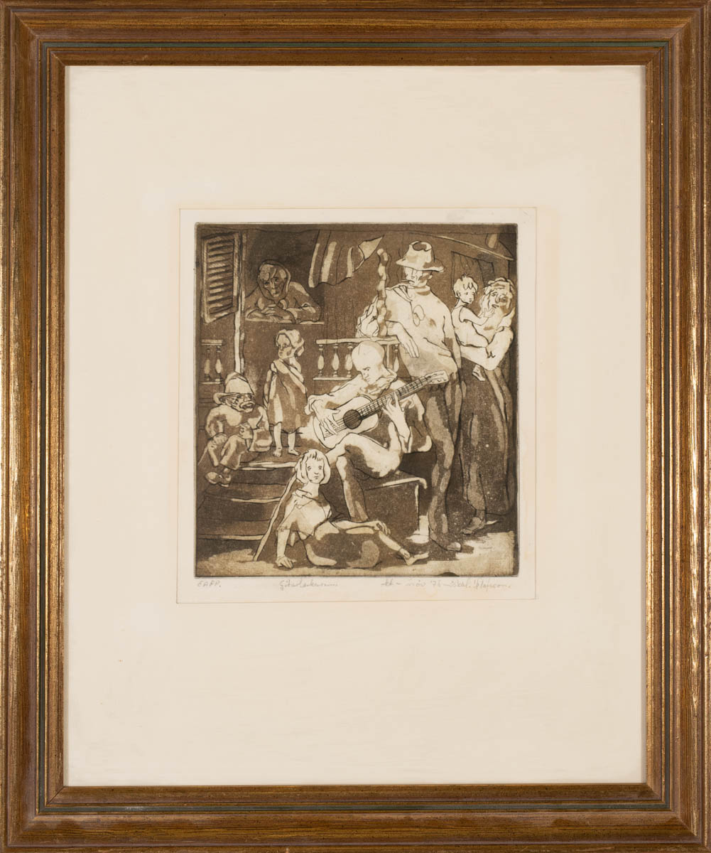 Gítarleikarinn - Þrykk - 1975. Merkt. 44 x 38 cm