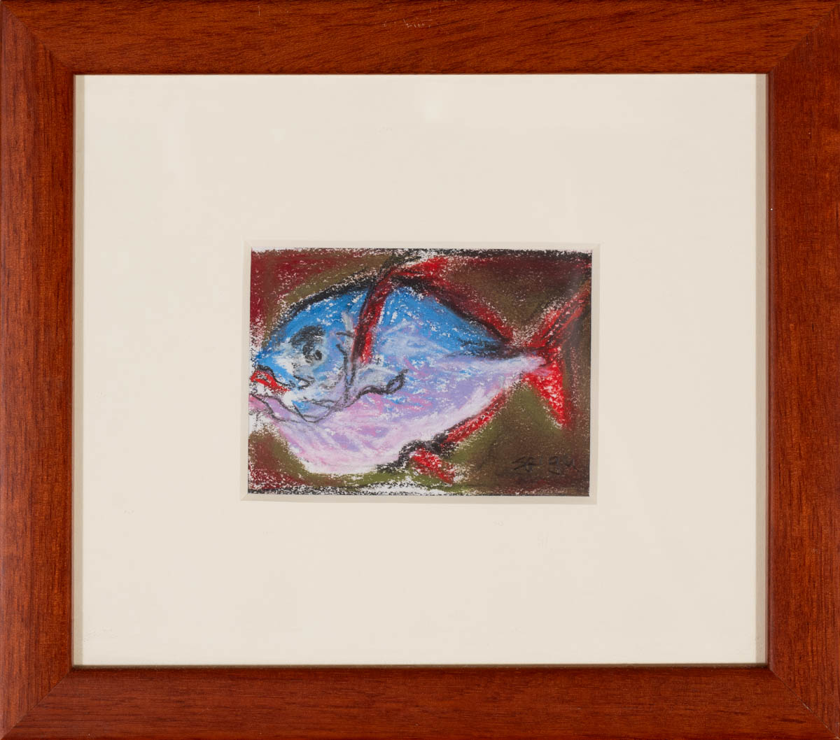Fiskur - Olíupastel - 1994. Merkt. 9 x 7 cm