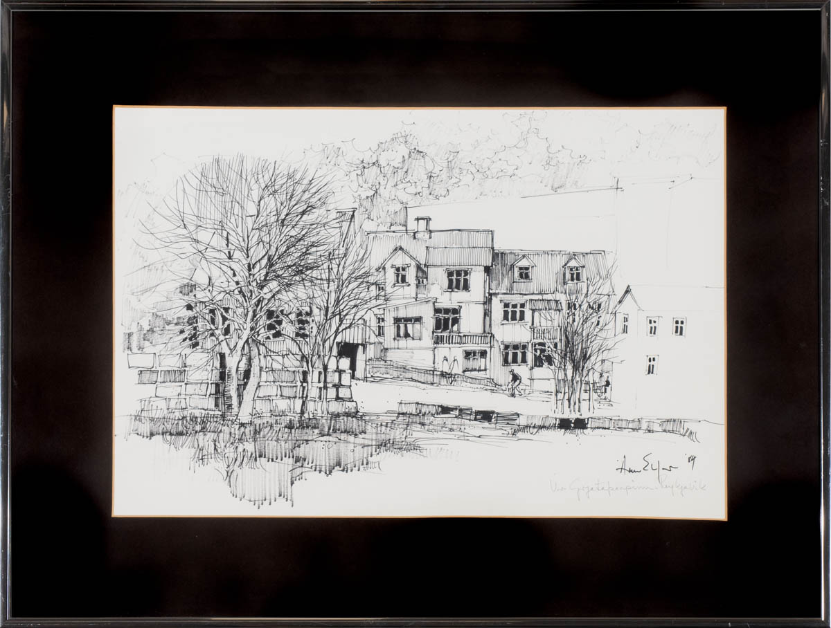 Úr Grjótaþorpinu, Reykjavík - Teikning - 1984. Merkt. 31 x 46 cm