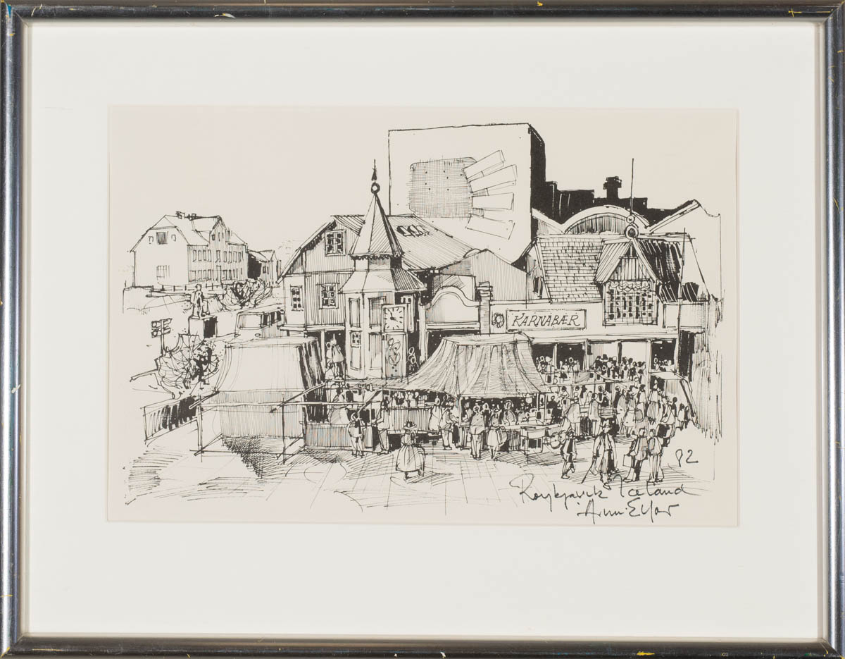 Lækjartorg - Túss - 1982. Merkt. 27 x 41 cm
