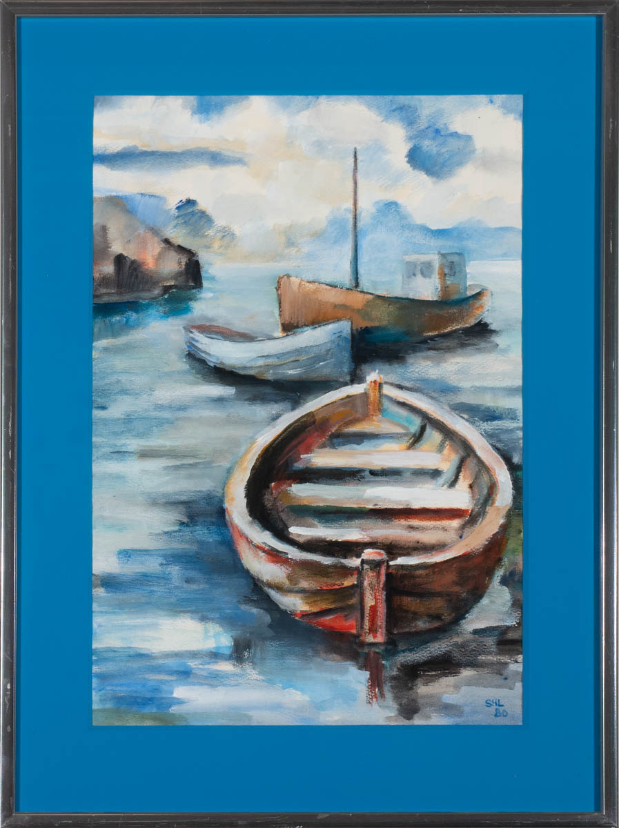 Bátar - Vatnslitir - 1980. Merkt. 50 x 34 cm