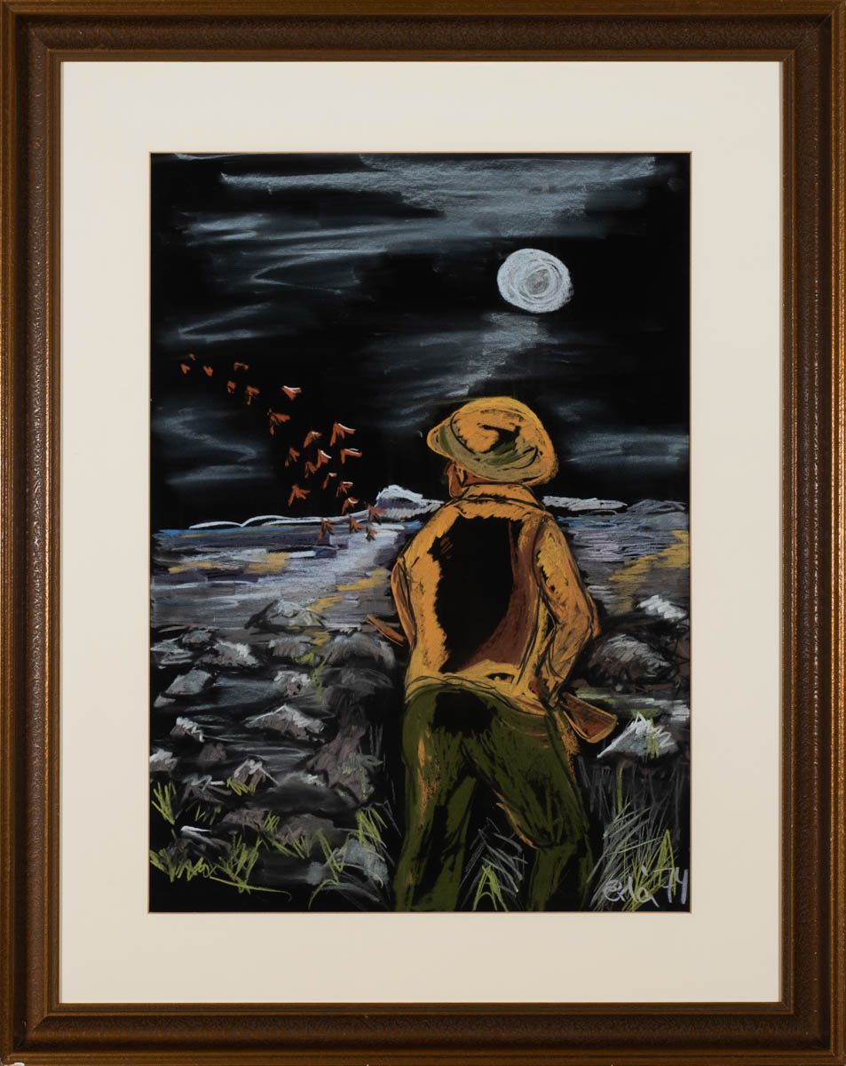 Veiðimaður - Pastel - 1974. Merkt. 64 x 46 cm