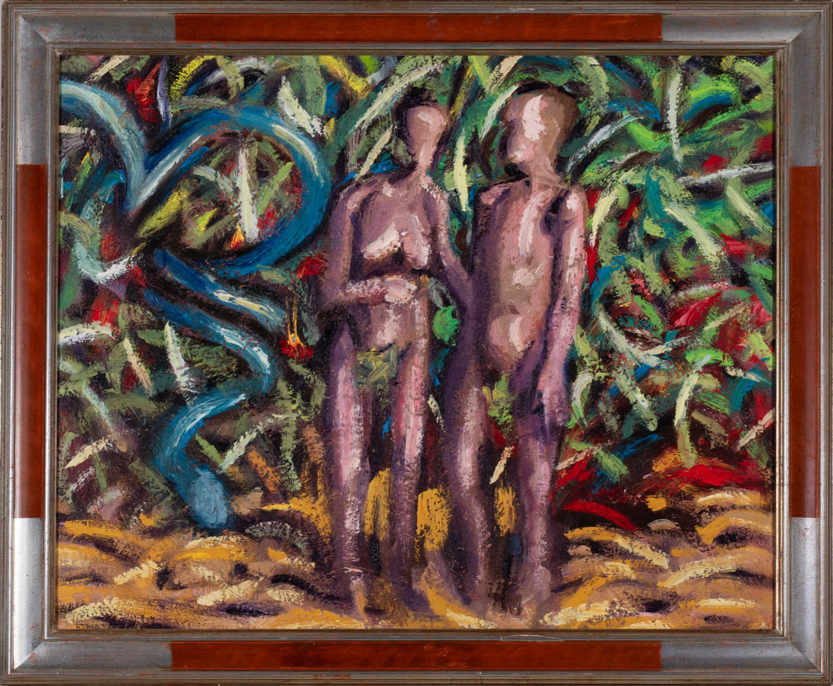 Adam og Eva - Olía - 1998. Merkt. 60 x 73 cm
