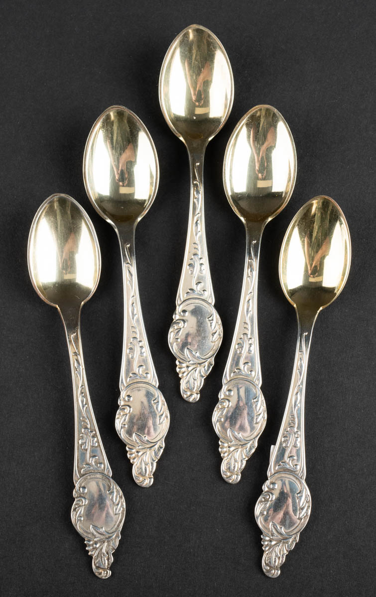 Renaissance - fimm mokkaskeiðar - 92 gr - Silfur - Merkt. 12 cm