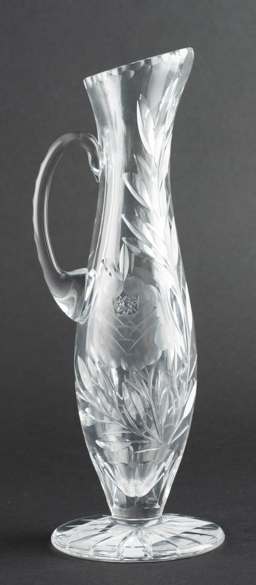 Matta rósin - Könnulaga blómavasi - Kristall - Kvarnað úr botni. Ómerkt. 0 x 0 cm
