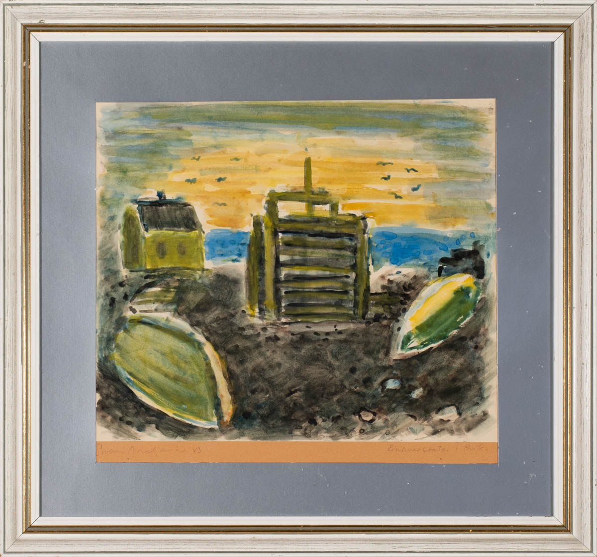 Lýsispressa við Ægissíðu - Vatnslitir - 1943. Merkt. 34 x 40 cm