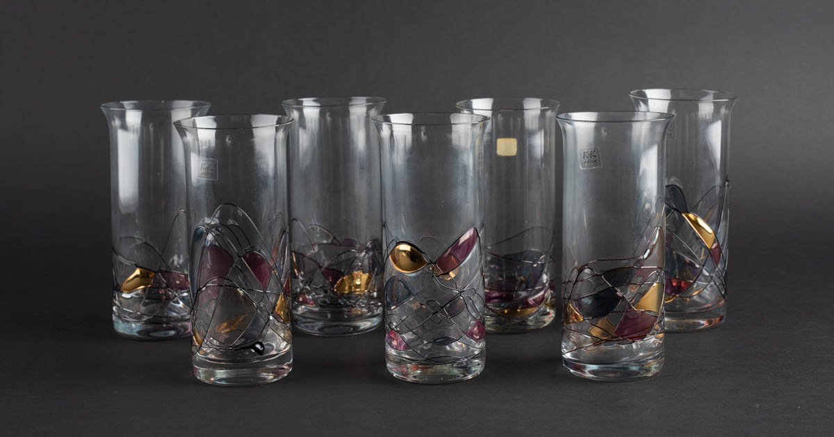 Fantasía - Sjö há glös - Gler - Merkt. 16 x 8 cm