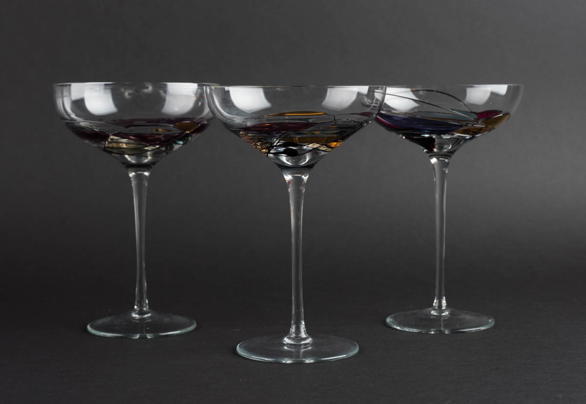 Fantasía - Þrjár kampavínsskálar - Gler - Ómerkt. 18 x 12 cm