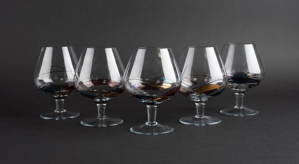 Fantasía - Fimm koníaksglös - Gler - Ómerkt. 15 x 10 cm