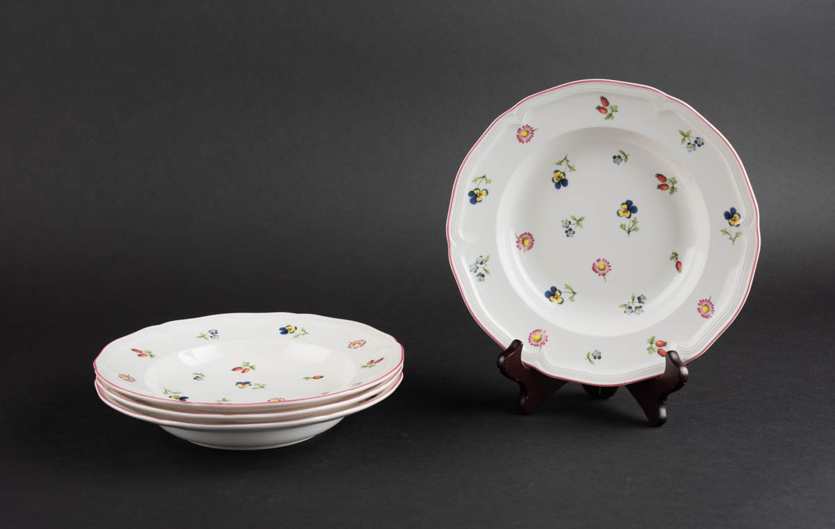 Petit Fleur - Fjórir djúpir diskar - Postulín - Merkt. 3 x 22 cm