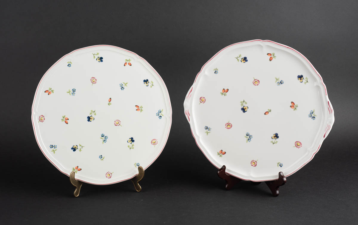 Petit Fleur - Tveir framreiðsludiskar - Postulín - Merkt. 1 x 30 cm