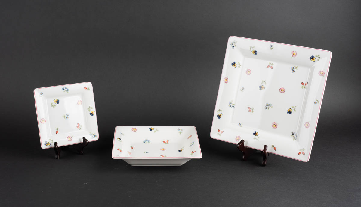 Petit Fleur - Þrír ferkantaðir meðlætisdiskar - Postulín - Merkt. 15 x 15 cm, 22 x 22 cm, 27 x 27 cm