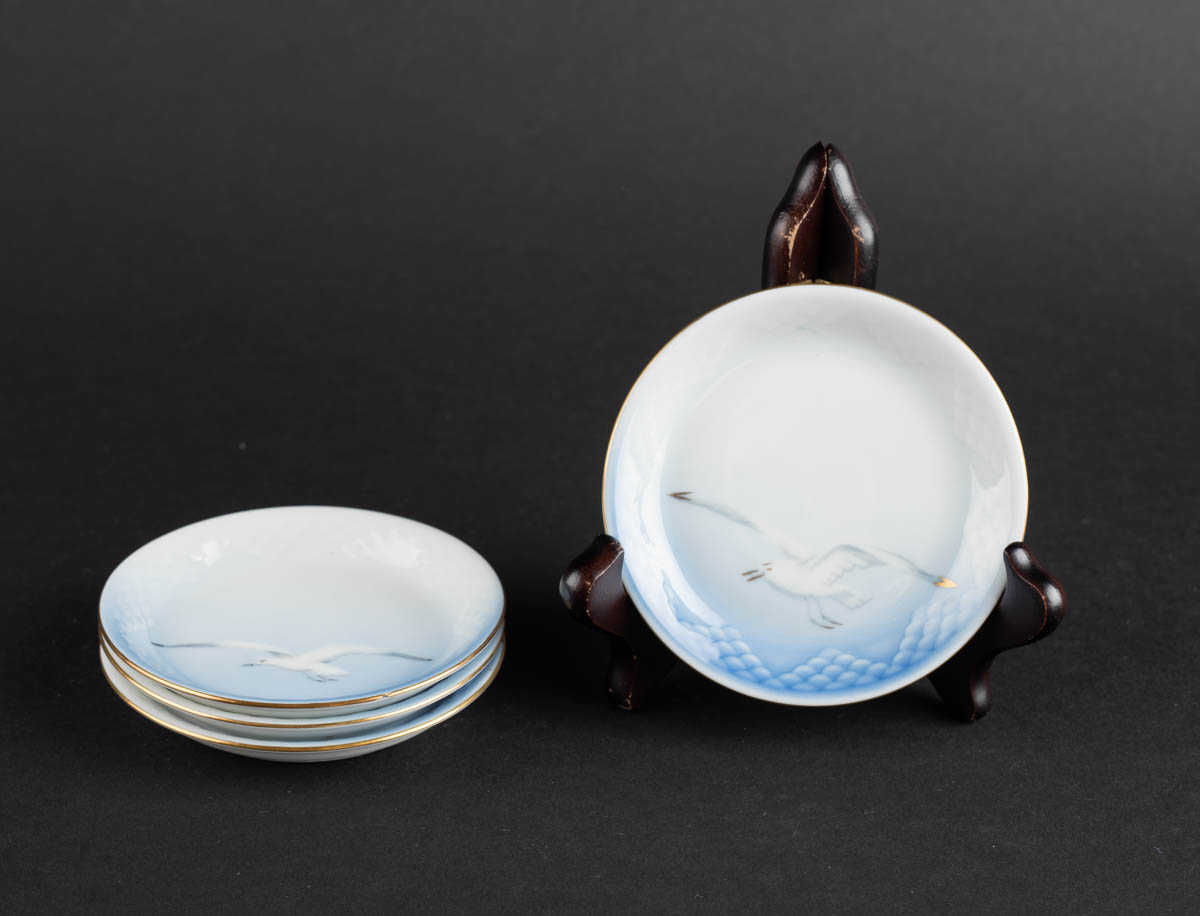Mávastell - fjórir smjördiskar - Postulín - Merkt. 10 cm