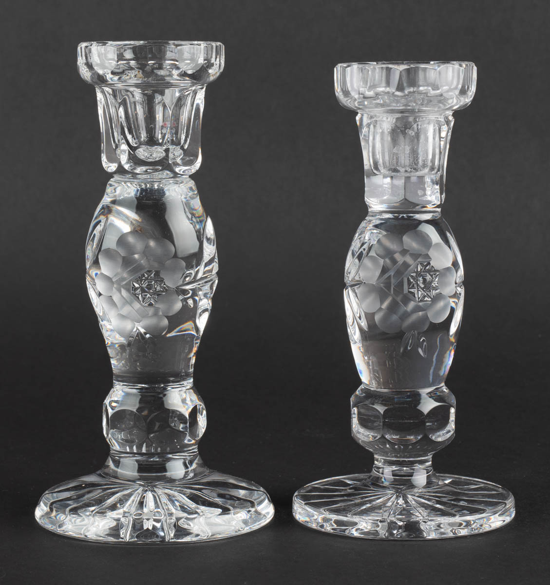 Matta rósin - Tveir kertastjakar á fæti - Kristall - Ómerkt. 16 x 8 cm