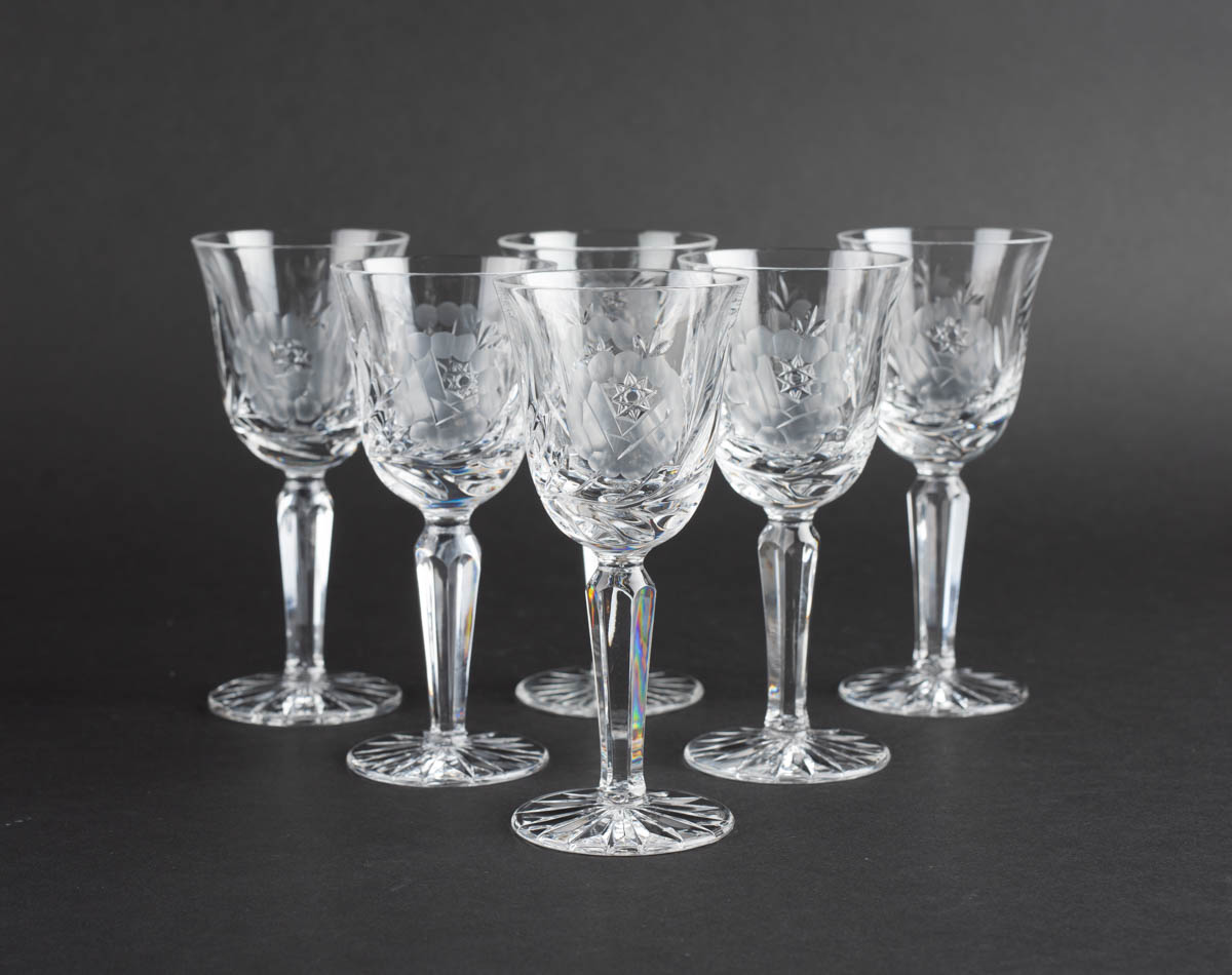 Matta rósin - Sex líkjörsglös - Kristall - Ómerkt. 11 x 5 cm