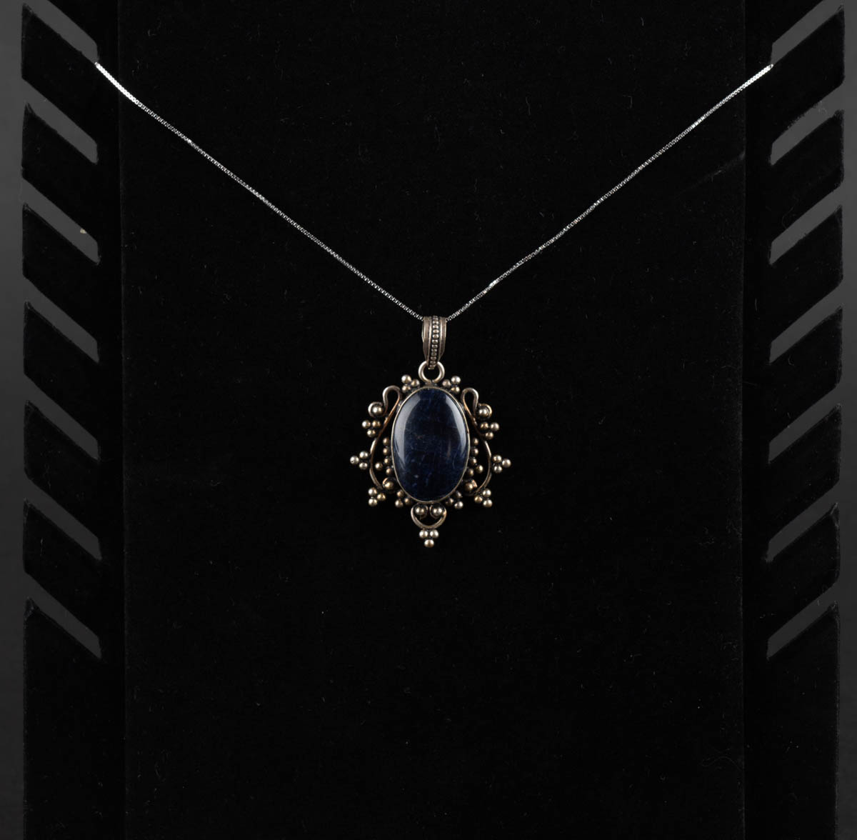 Silfurhálsmen með svörtum stein - Silfur - 12.48 g. 50 cm