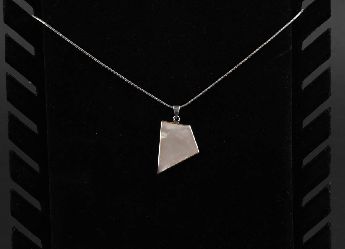 Silfurmen með perluskel og festi - Silfur - 825s. 15.55 g. 60 cm