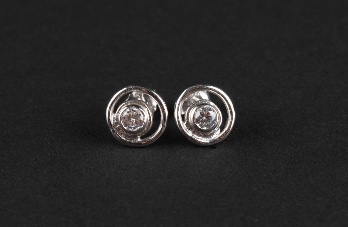 Silfurlokkar með zirkon steinum - Silfur - 2.41 g. 0 cm