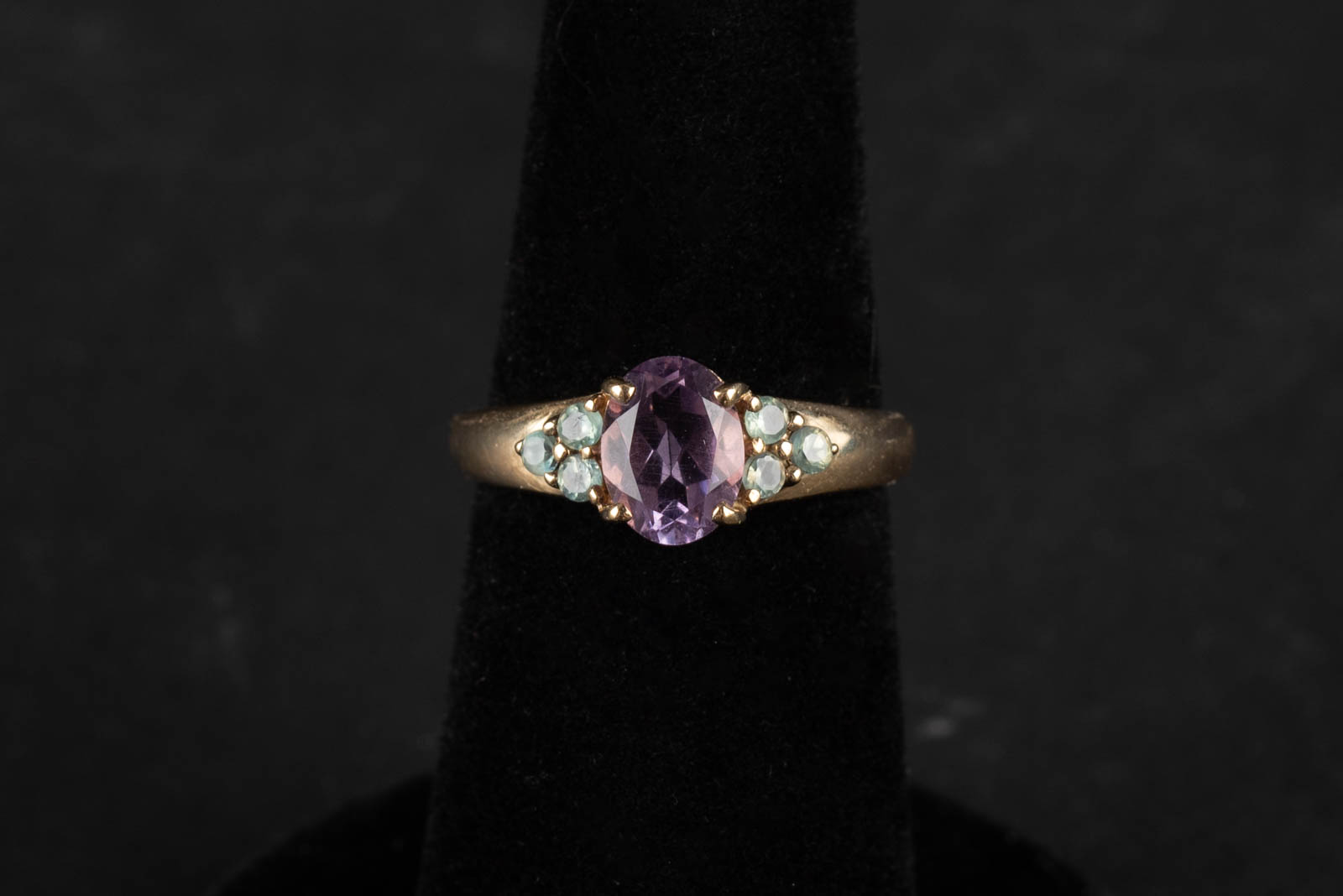 9kt Gullhringur með grænum og lillabláum ametistum - Gull - 2.9 g EU 54. cm