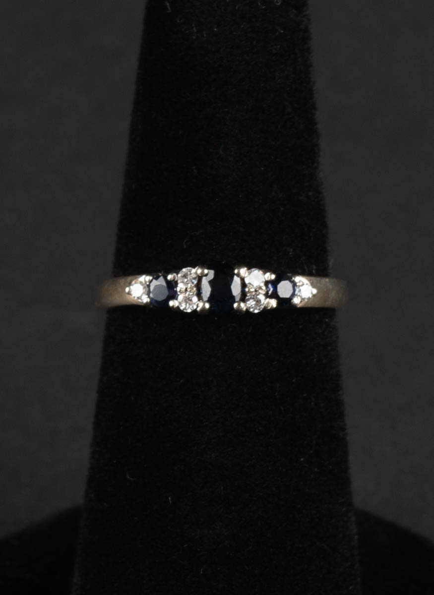 9 kt Gullhringur með þremur safírum 0.25 ct og sex demöntum 0.1875 ct - Gull - 2.5 g. EU 57. cm
