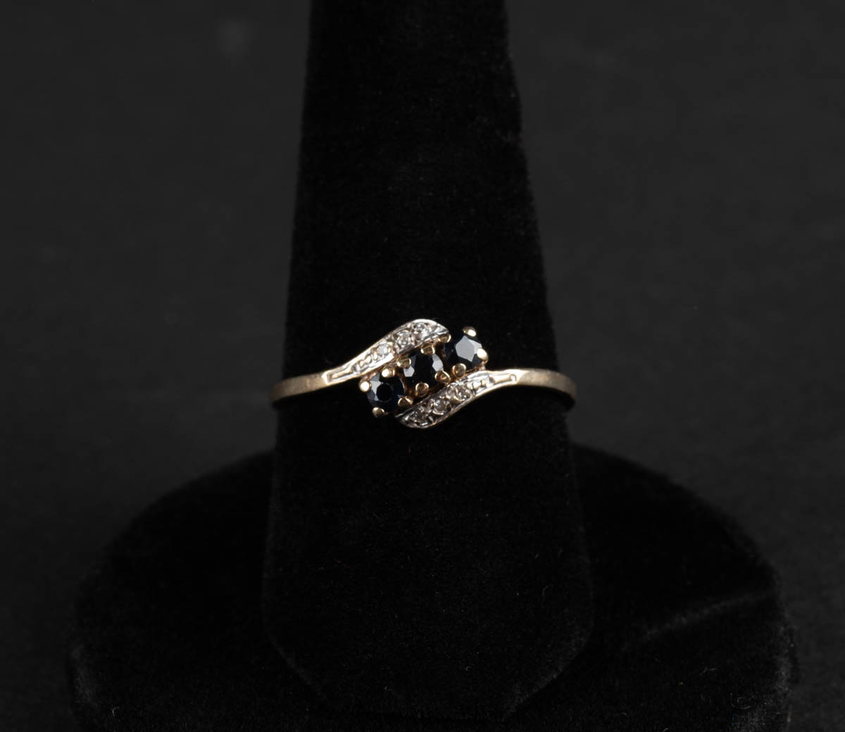 9 kt Gullhringur með þremur safírum og sex demöntum 0.09 ct - Gull - 1.65 g. EU 70. cm