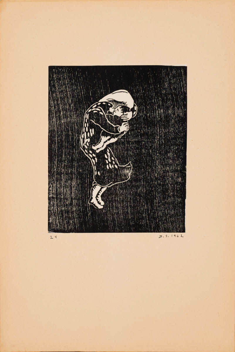 Tréskurðarmynd nr. 24 - Þrykk - 1962. Merkt. 23 x 19 cm