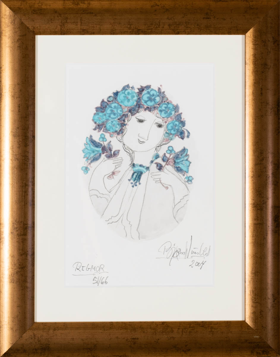 Blómastúlkan - Þrykk - 2004. Merkt. 18 x 13 cm
