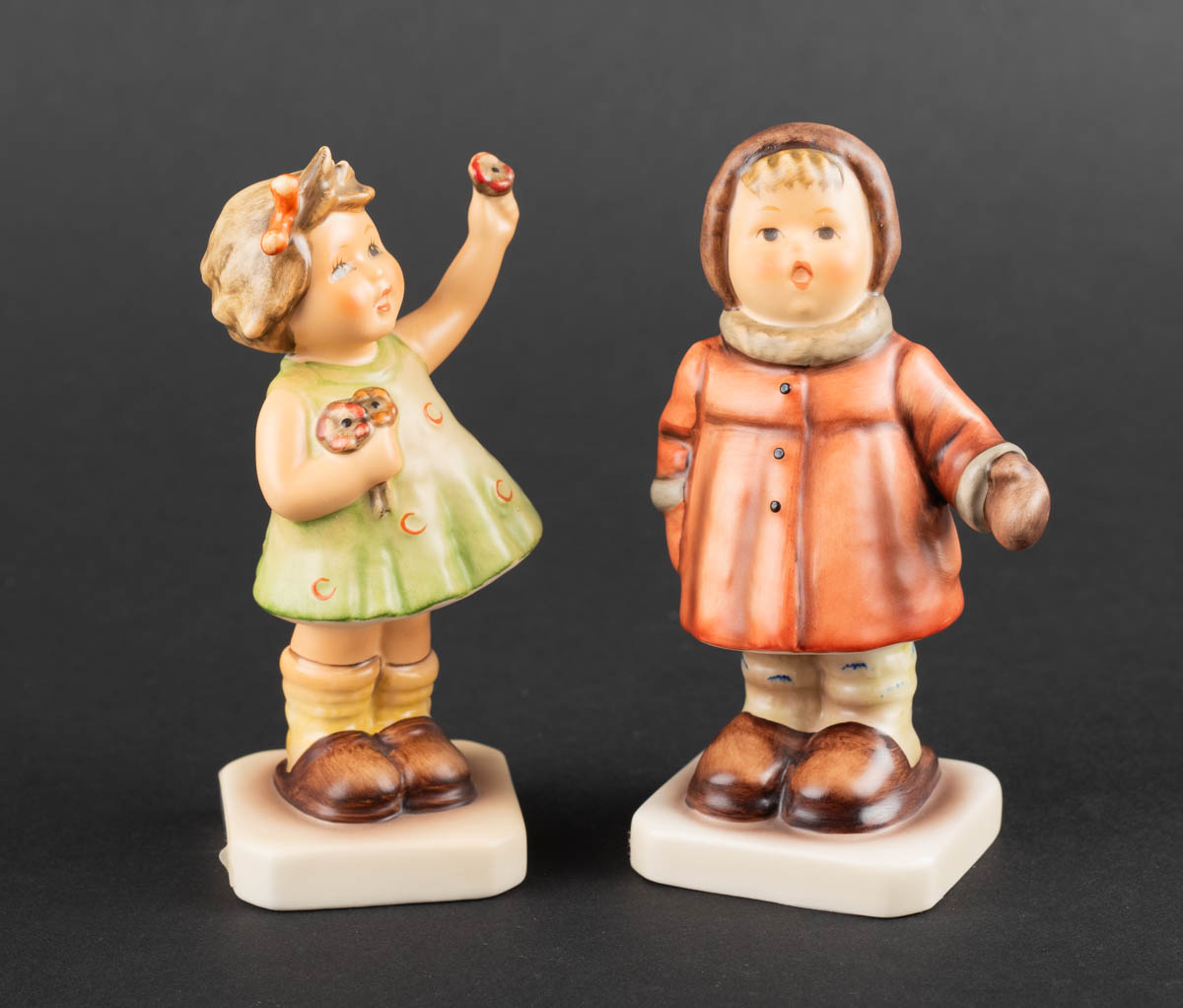 Tvær Hummel - styttur - Postulín - 1994 #793 Forever Yours #476 Winter Song. Merkt. 10 x 4 cm