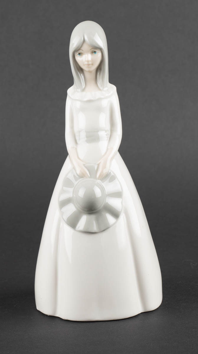 Stúlka í kjól með hatt - Postulín - 23 x 10 cm