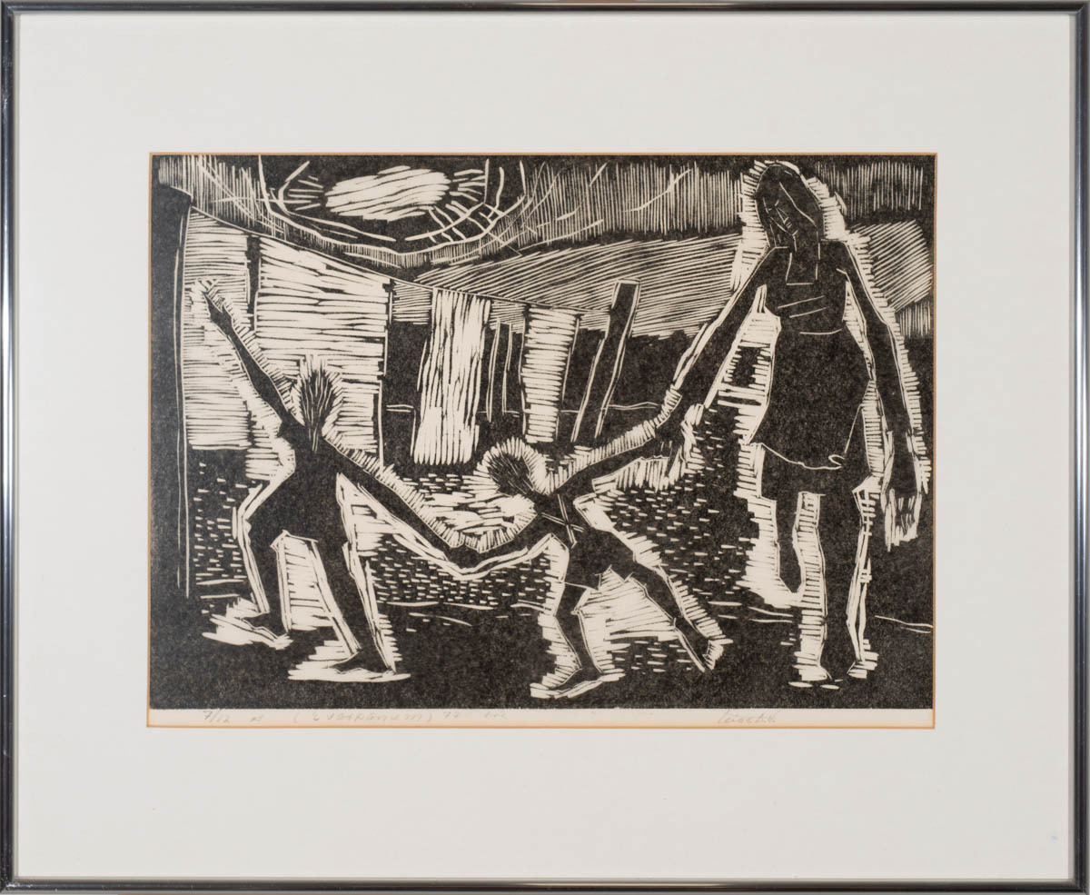 Í varpanum - Trérista - 1977. Merkt. 7/12. 29 x 40 cm