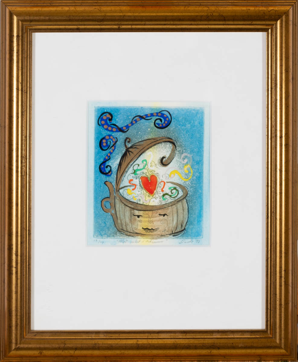 Með mikið í askinum - Þrykk - 1997. Merkt. 17/40. 14 x 12 cm