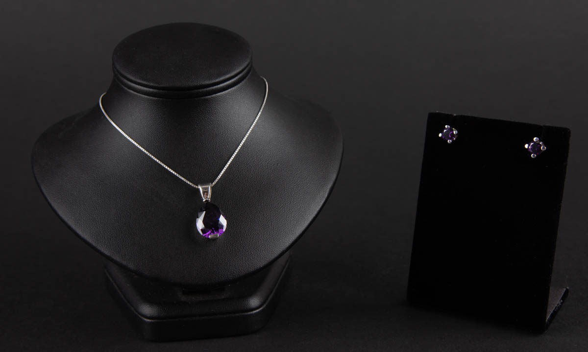 Silfurmen og -eyrnalokkar með fjólubláum zirkon steinum - Silfur - 925s. 9.36 g. 50 cm