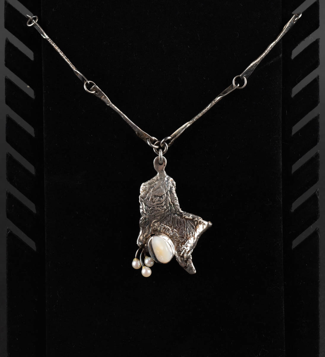 Hálsmen með agat og perlum - Silfur - 925S. 56 g. Merkt. 58 cm