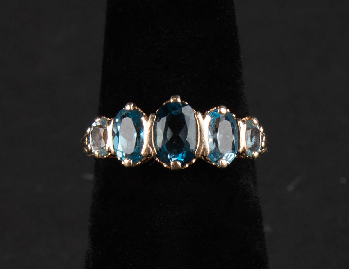 9 kt Gullhringur með bláum tópas - Gull - EU 53. 3.17 g. cm