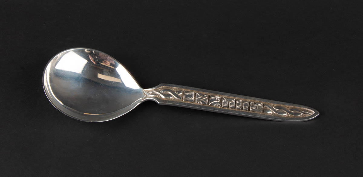 Stór skeið - Höfðaletur - Handsmíðað - Silfur - 925s. 132 g. Blað úr silfri. Merkt. 25 cm