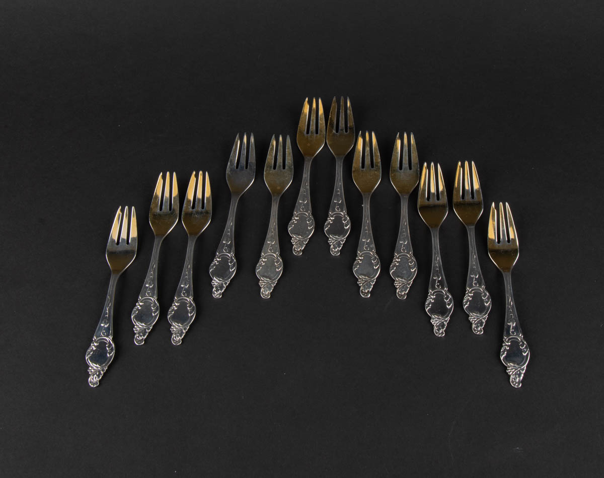 Renaissance - 12 kökugafflar - Silfur - 243 g. Merkt. 13 cm