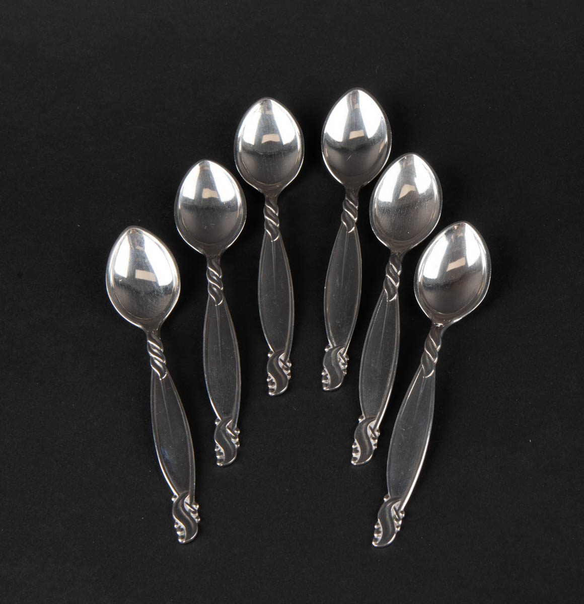 Vor - sex mokkaskeiðar - Silfur - 103 g. Merkt. 12 cm