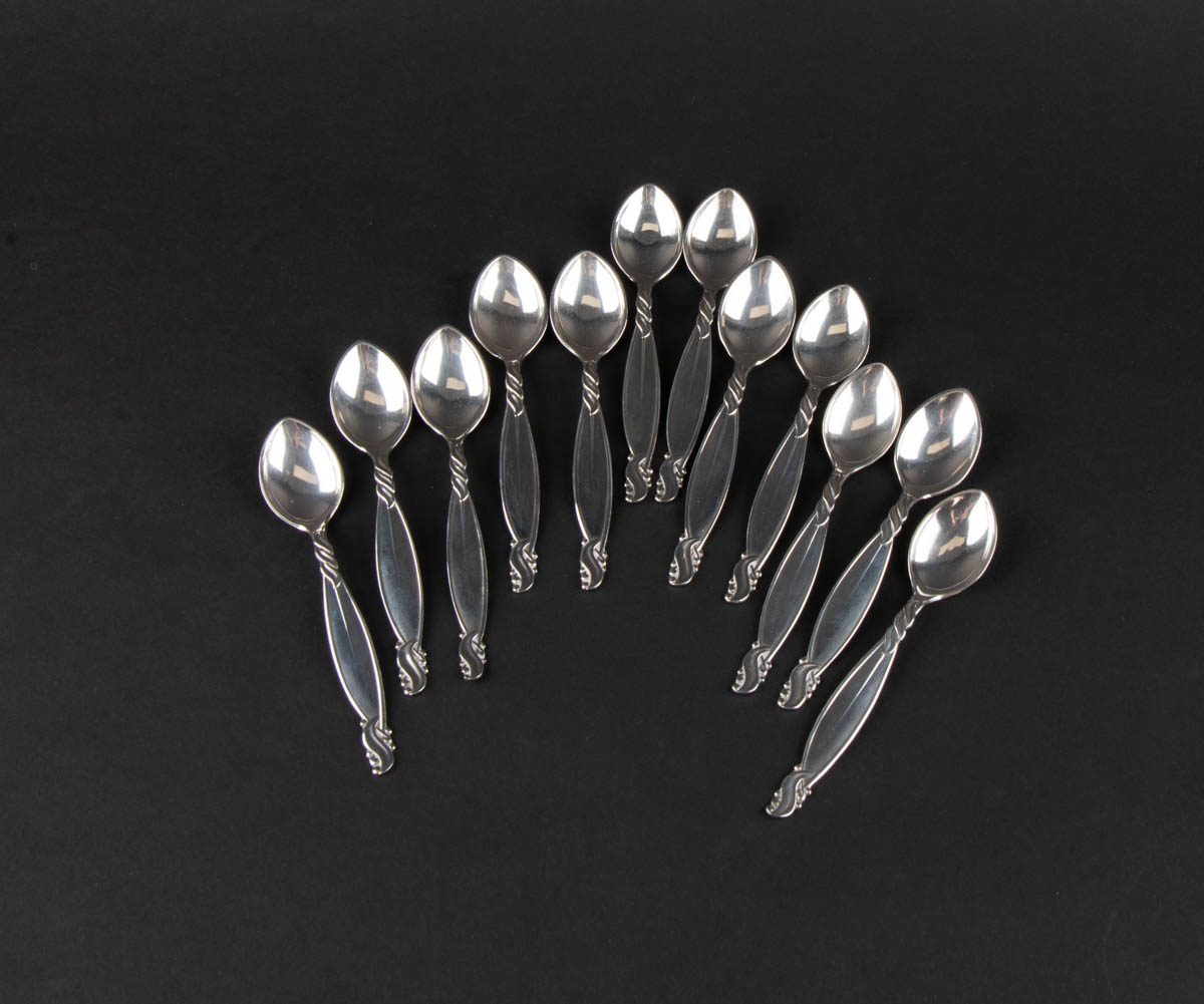 Vor - 12 mokkaskeiðar - Silfur - 202 g. Merkt. 12 cm