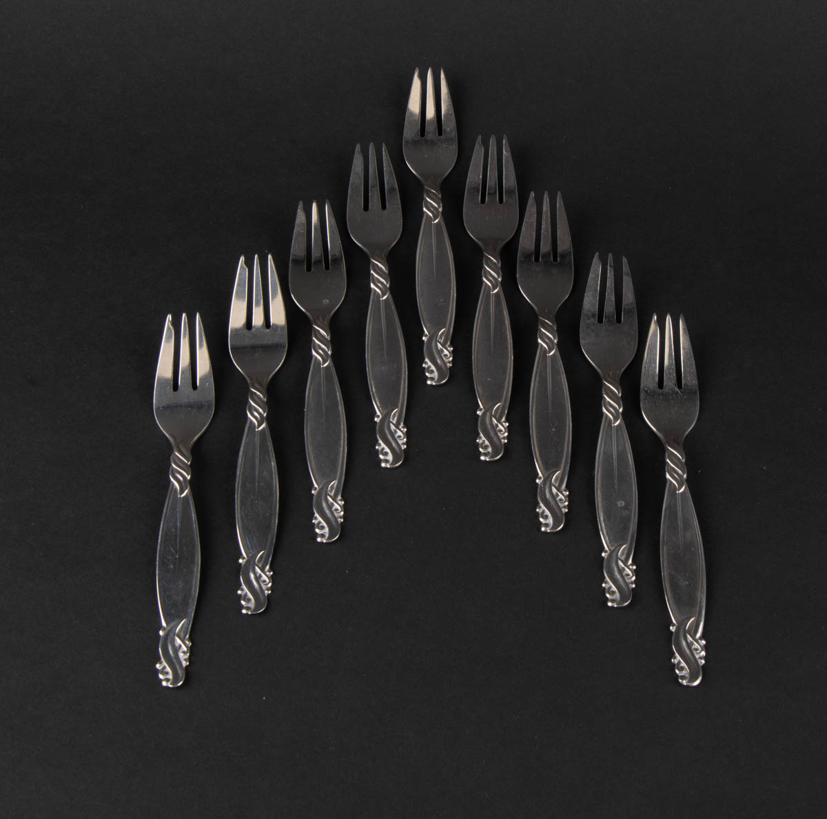 Vor - níu kökugafflar - Silfur - 208 g. Merkt. 14 cm