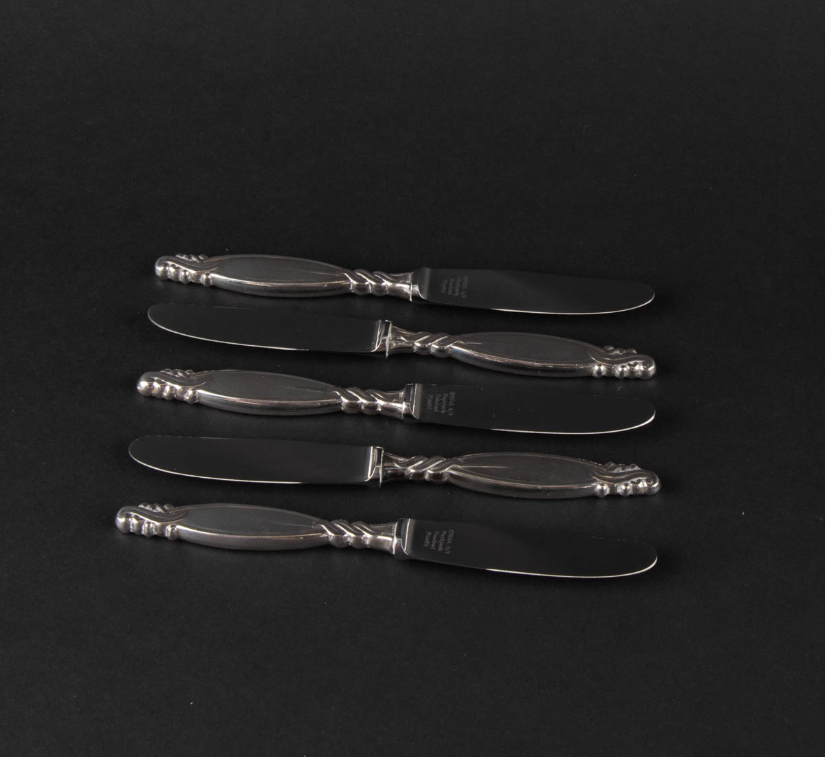 Vor - fimm smáhnífar - Silfur - 158 g. Merkt. 16 cm