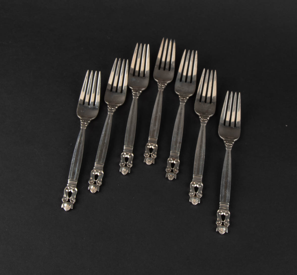Akorn - sjö forréttagafflar - Silfur - 288 g. Merkt. 16 cm